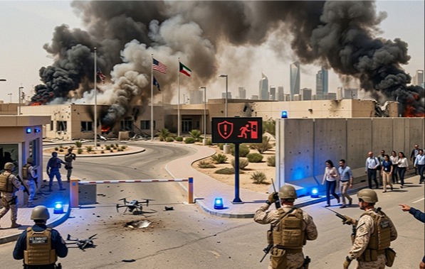 The embassy itself did not immediately confirm whether the building was directly hit, but issued a security alert telling people not to come to the premises, because there was a continuing threat of drones (UAVs) and missiles over Kuwait. Embassy staff were told to shelter in place for their safety. Kuwait’s air defence systems intercepted several hostile drones early on, and sirens were heard across the city as authorities worked to protect both civilian and diplomatic areas.